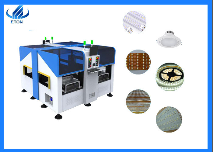 Ejemplos de los usos del producto que se pueden montar en esta máquina, tal como bulbos, placas de circuito, downlights, luces de calle, y conductores.
