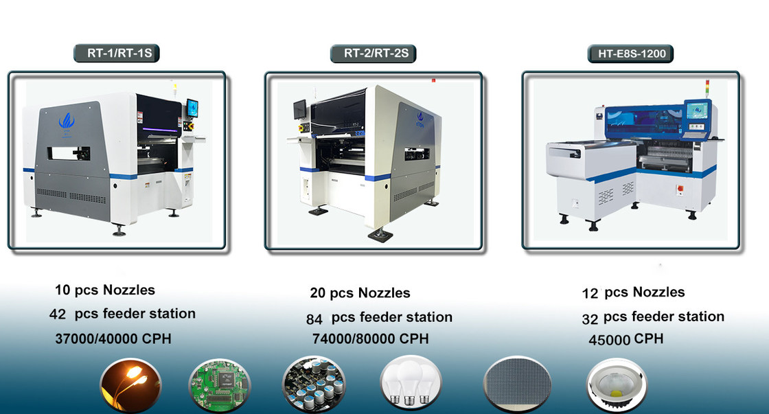 2) Montaje components: Es aplicable a la gama más amplia de componentes, y puede ser montado con los resistores, condensadores, IC, puentes rectificadores, inductancia, terminales, diodos, transistores, transformadores de la grande-capacitancia, componentes formados. La alta precisión, puede montar 0402 componentes.